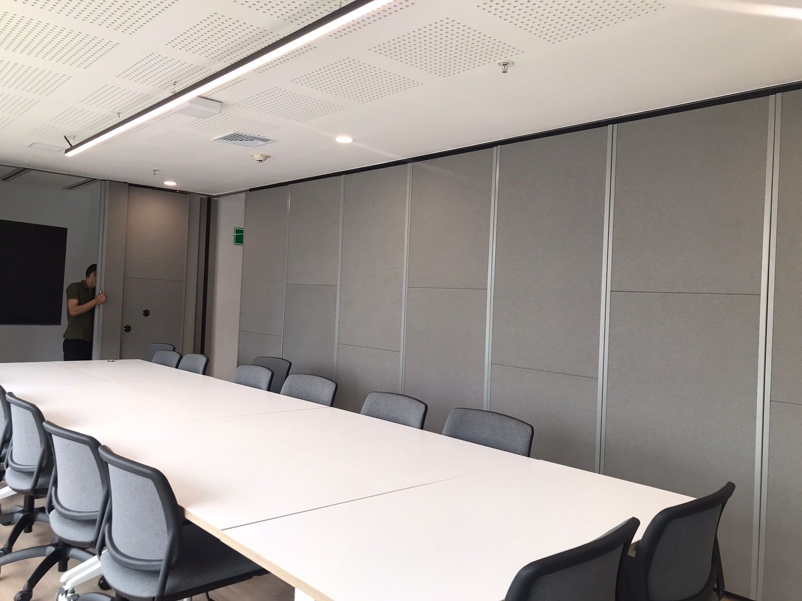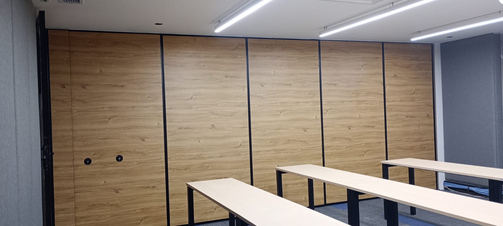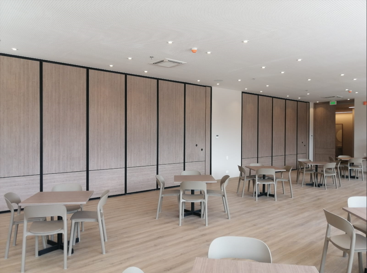 Con ingeniería desarrollada por Acustec, fabricamos paneles móviles corredizos con distintos niveles de aislamiento acústico y con diferentes alternativas de acabados para el uso de espacios como un solo gran salón o simultáneamente de varios de ellos sin que el sonido afecte al contiguo.
